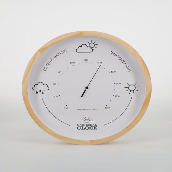 assemblé à la main à partir de bois naturel et l'aiguille est en aluminium anodisé, ce baromètre mural mesure la pression atmosphérique avec une grande fiabilité.