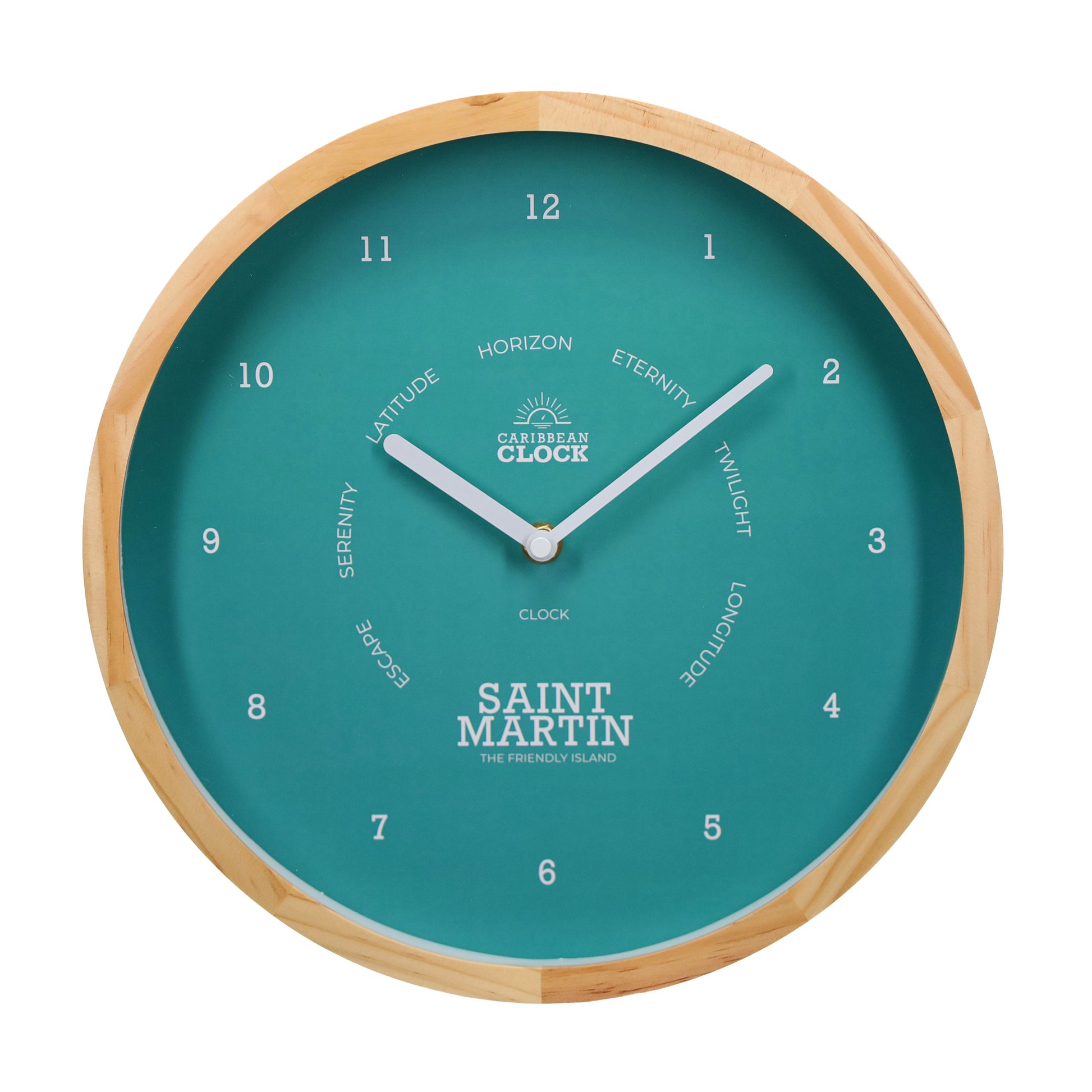 Assemblée à la main à partir de bois naturel et l'aiguille est en aluminium anodisé, elle associe la rigueur du temps à la douceur végétale de l’île de Saint-Martin.