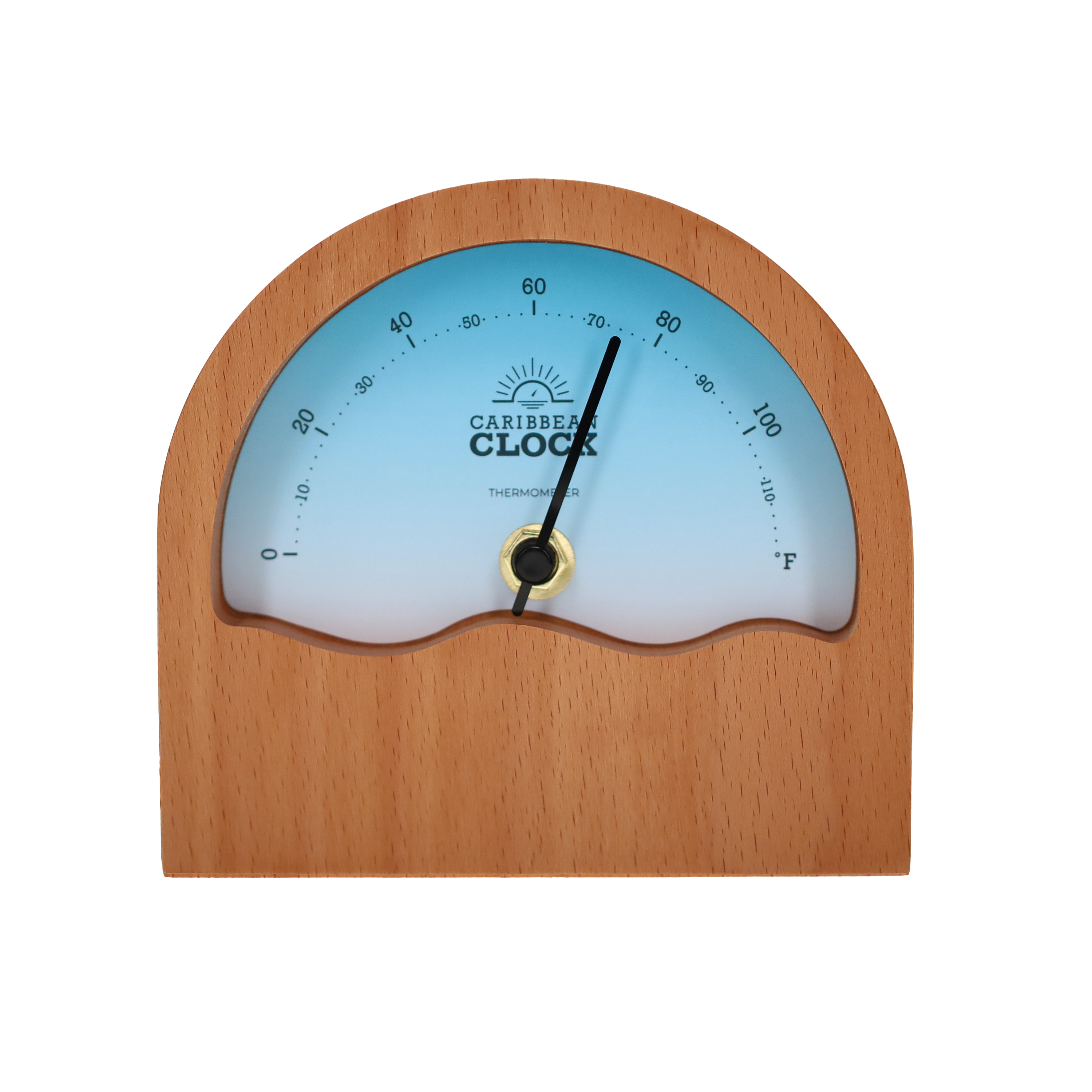Designed and assembled by hand from natural wood with an anodized aluminum needle, it displays the ambient temperature in degrees Fahrenheit (°F) with reliability and elegance.